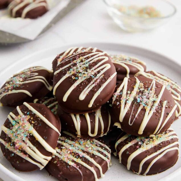 - Melt the chocolate chips in a microwave-safe bowl in 20-second intervals, stirring between each, until smooth. Add milk and stir to thin the chocolate slightly. If needed, add 1/2 teaspoon of oil at a time to thin it more until desired consistency.