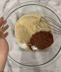 - In a medium bowl, stir together the almond flour, cocoa powder, baking soda, and salt. Set aside.