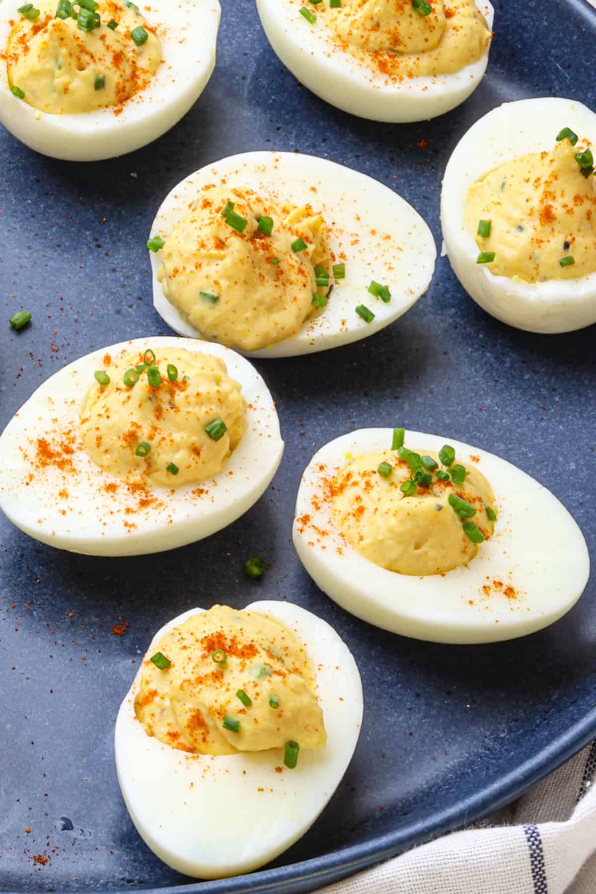 Never leave deviled eggs at room temp for longer than 2 hours. Store leftover deviled eggs in a single layer inside an airtight container in the fridge. For the best quality, eat them within 4 to 5 days. I don’t recommend freezing deviled eggs, as the thawing process will compromise the texture of the eggs and filling—the whites will get rubbery and the filling will separate and become grainy.