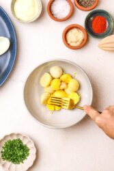 - Use a fork to mash the yolks until smooth.