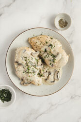 Swapping ingredients is easy in this recipe, especially if you have to cater to different dietary styles. I use gluten-free all-purpose flour when I make it. If you need an alcohol-free version, combine equal amounts of grape juice and chicken broth with a splash of apple cider vinegar to replace the marsala wine. Make it dairy-free by using plant-based butter and heavy cream.