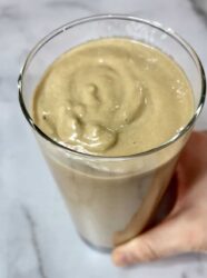 This smoothie is keto gold because it’s loaded with healthy fats from the avocado and peanut butter, while keeping net carbs in check thanks to the almond milk and monk fruit.