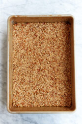 - Preheat your oven to 350°F. In a bowl, combine crushed pretzels, granulated sugar, and melted butter. Press the mixture firmly into the bottom of a 9×13-inch baking dish.