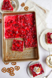 If you have leftover raspberry pretzel salad, lucky you. I think it tastes even better the second day, when the crust softens a bit but still has some crunchy bites. Store your leftovers in an airtight container or tightly covered in the refrigerator for up to 3 days. This dish does not freeze well.