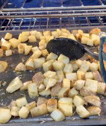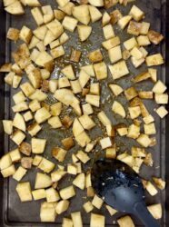 - Spread onto a large, rimmed baking sheet, making sure to leave some room between the potatoes.