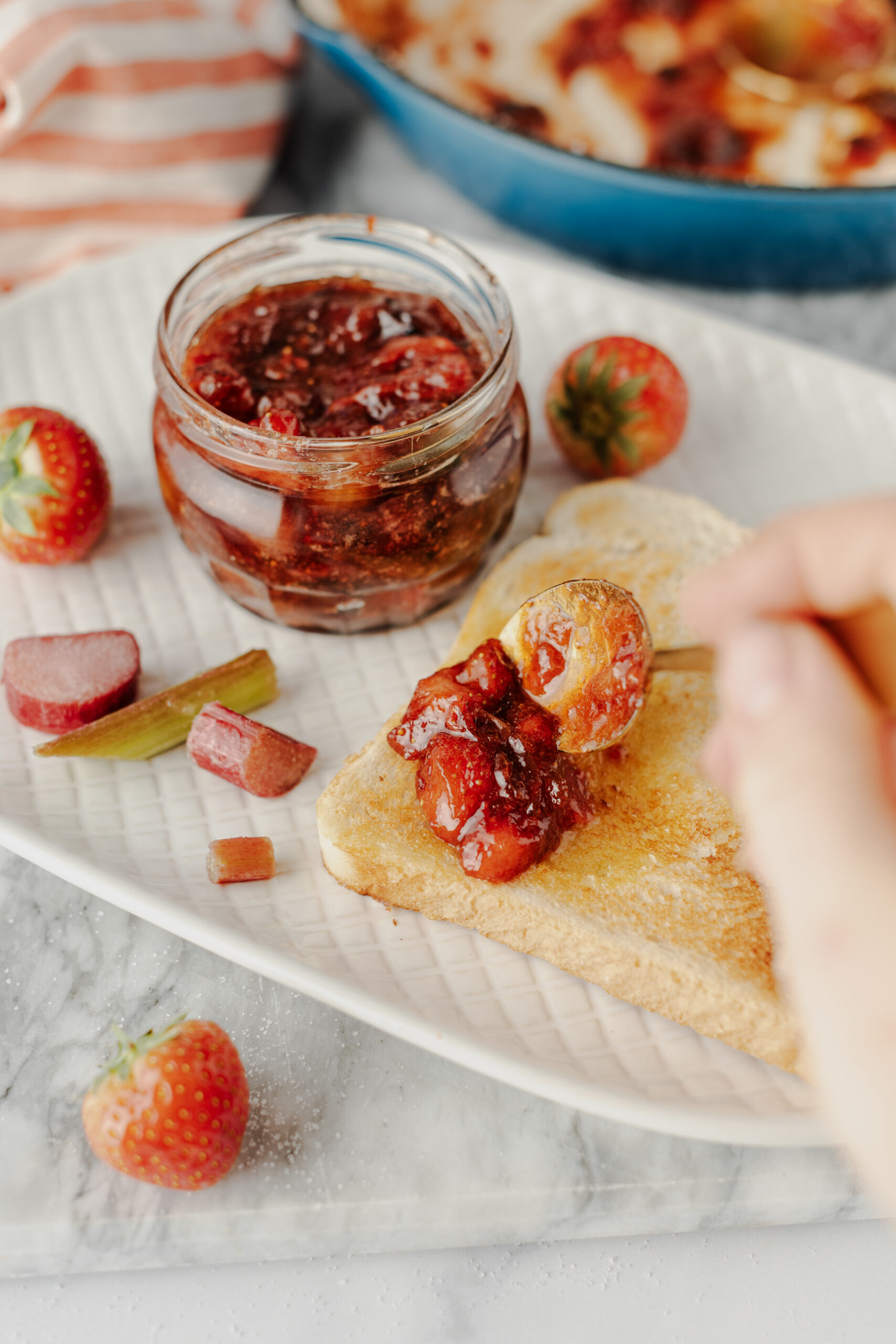 Craving strawberry and rhubarb for breakfast? This sweet, tangy jam is perfect on toast.